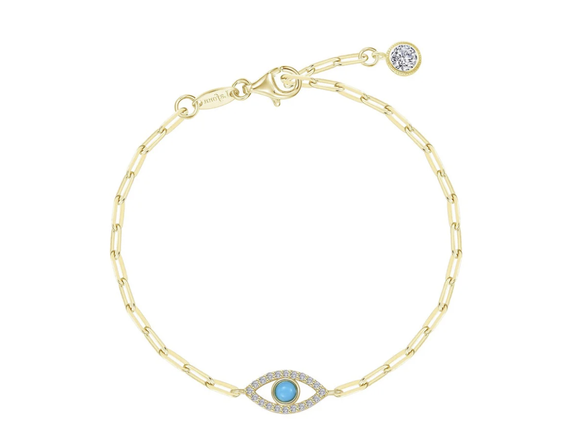 Featuring a striking evil eye design, this piece is crafted to shield you from negativity while bringing tranquility and balance. Set in Lafonn's signature Lassaire simulated diamonds and reconstituted turquoise in sterling silver plated with gold.