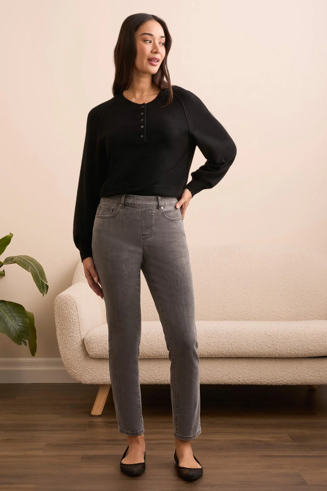 Audrey Pull On Slim Ankle Jeans - Silver Grey