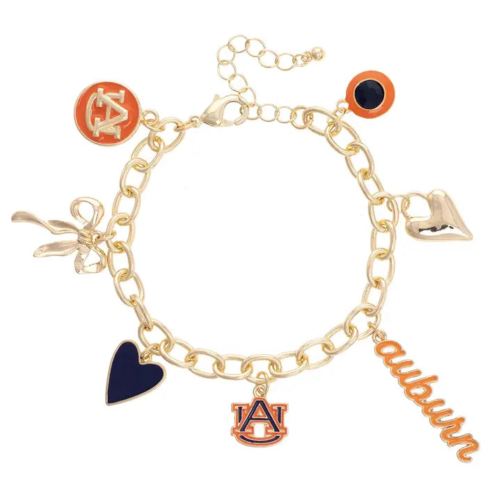 Show off your Auburn Tigers pride in style with the Auburn Tigers Enamel Icons Charm Bracelet in Shiny Gold. Featuring a collection of enamel charms representing the team, this bracelet is a fun and fashionable way to wear your school spirit every day.