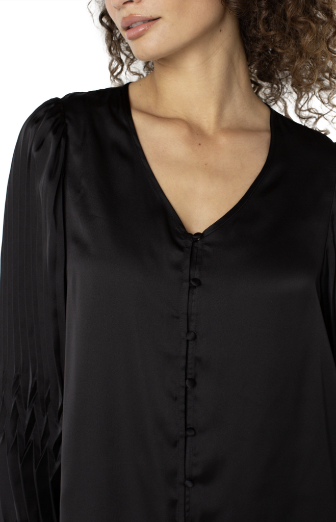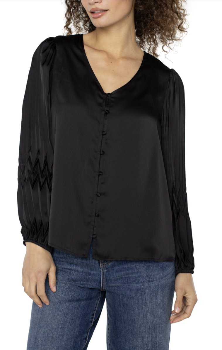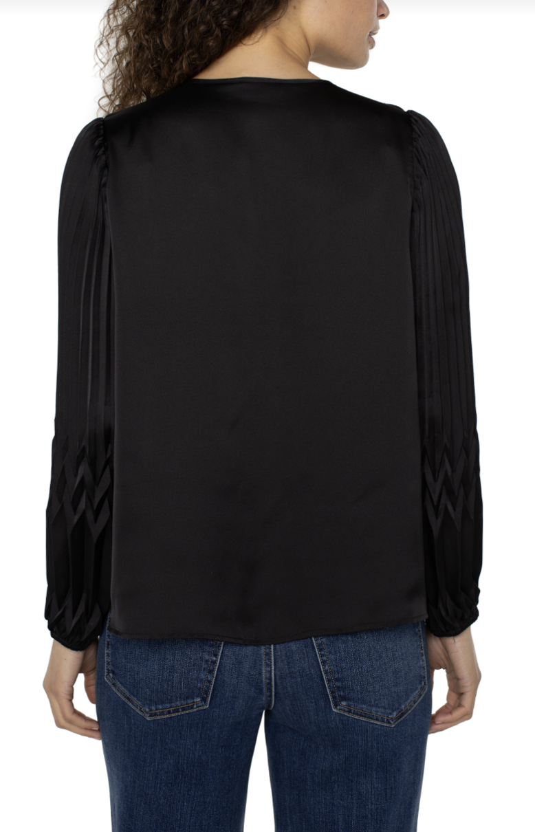 long sleeve v-neck pleated detail woven top
