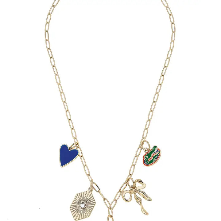 This Florida Gators Paper Clip Charm Collector Necklace in Shiny Gold features a trendy paperclip chain with a charm showcasing the Gators logo. This chic and modern necklace is the perfect way to show off your team spirit with a touch of elegance.