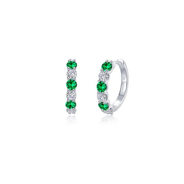Featuring a sophisticated scalloped edge, these hoops offer a delicate yet bold design that complements any outfit. The unique design creates a dynamic play of light, giving them a modern and refined appeal. Set with Lafonn's signature Lassaire simulated diamonds and simulated emeralds in sterling silver bonded with platinum.