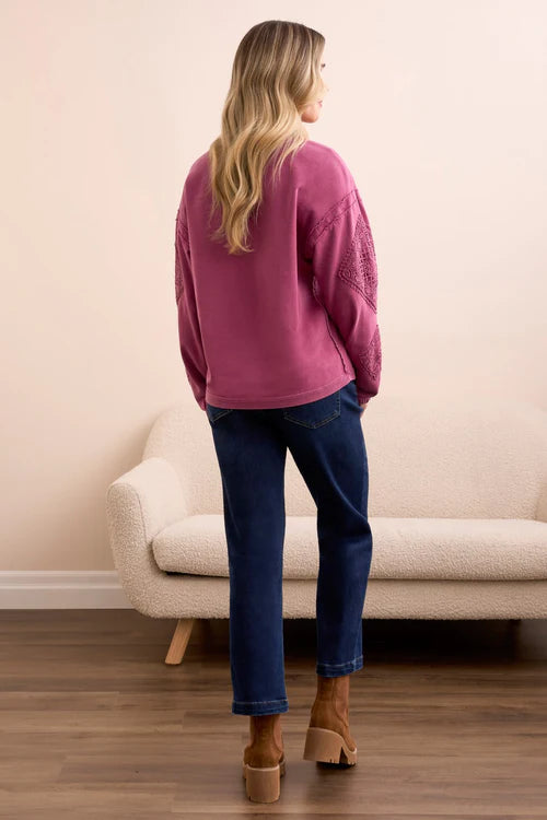 Wrap yourself in effortless style with a cotton-blend French terry sweatshirt that redefines casual comfort. The vintage wash adds retro flair, while appliqué detailing on the sleeves brings elevated texture to this off-duty essential.