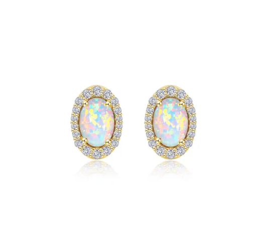 Inspired by the charm of the past, each of these oval halo stud earrings features a simulated opal surrounded by Lafonn's signature Lassaire simulated diamonds in sterling silver using Lafonn's exclusive TR Gold, a new and improved plating process that preserves the rich color of gold and enhances the wearability of our gold-plated styles.